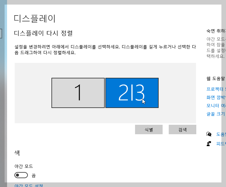 2. 상단에 듀얼모니터 번호가 있습니다.