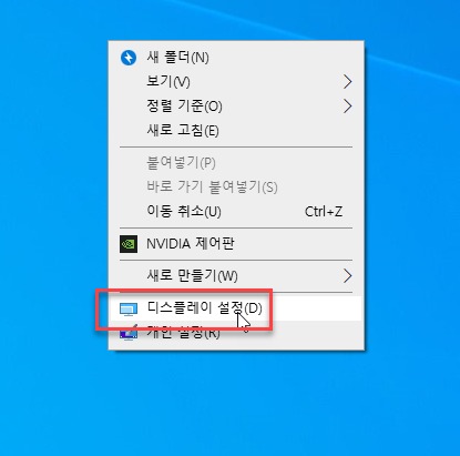 1. 바탕화면에 마우스 우클릭 ▶ 디스플레이설정 들어가주세요