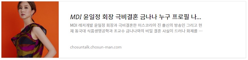 MDI 윤일정 회장 극비결혼 금나나 누구 프로필 나이 학력 재산