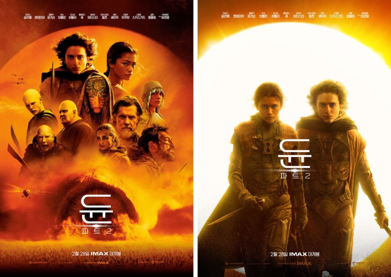전작인 1편도 빌뇌브 감독의 스타일이 그대로 살아있는 데다가, 아이맥스로 안보면 손해로 느껴질 정도의 압도적인 스케일의 영상미가 펼쳐지고, “나 한스 짐머야!!”를 외치는 듯, 웅장하다 못해 영화를 잡아먹을 정도로 엄청난 존재감을 과시하는 음악들로 꽉차 있었죠!? 하지만 이 2편은 다릅니다!!